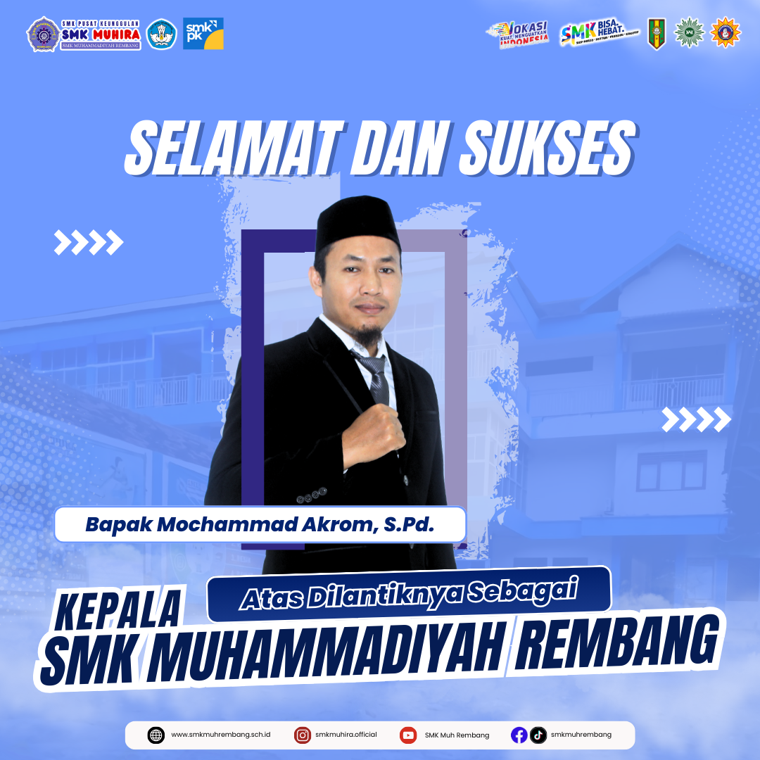 "Selamat dan Sukses!" Kepada Bapak Mochammad Akrom, S.Pd. Atas dilantiknya sebagai Kepala SMK Muhammadiyah Rembang. Semoga dapat membaw...
