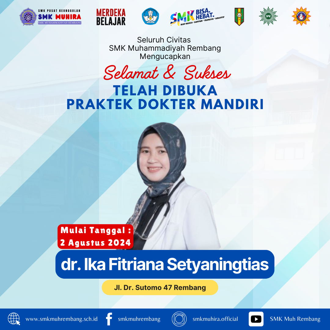 Selamat & Sukses Pembukaan Praktek Dokter Mandiri oleh dr. Ika Fitriana Setyaningtias Kami, seluruh civitas SMK Muhammadiyah Rembang, dengan b...