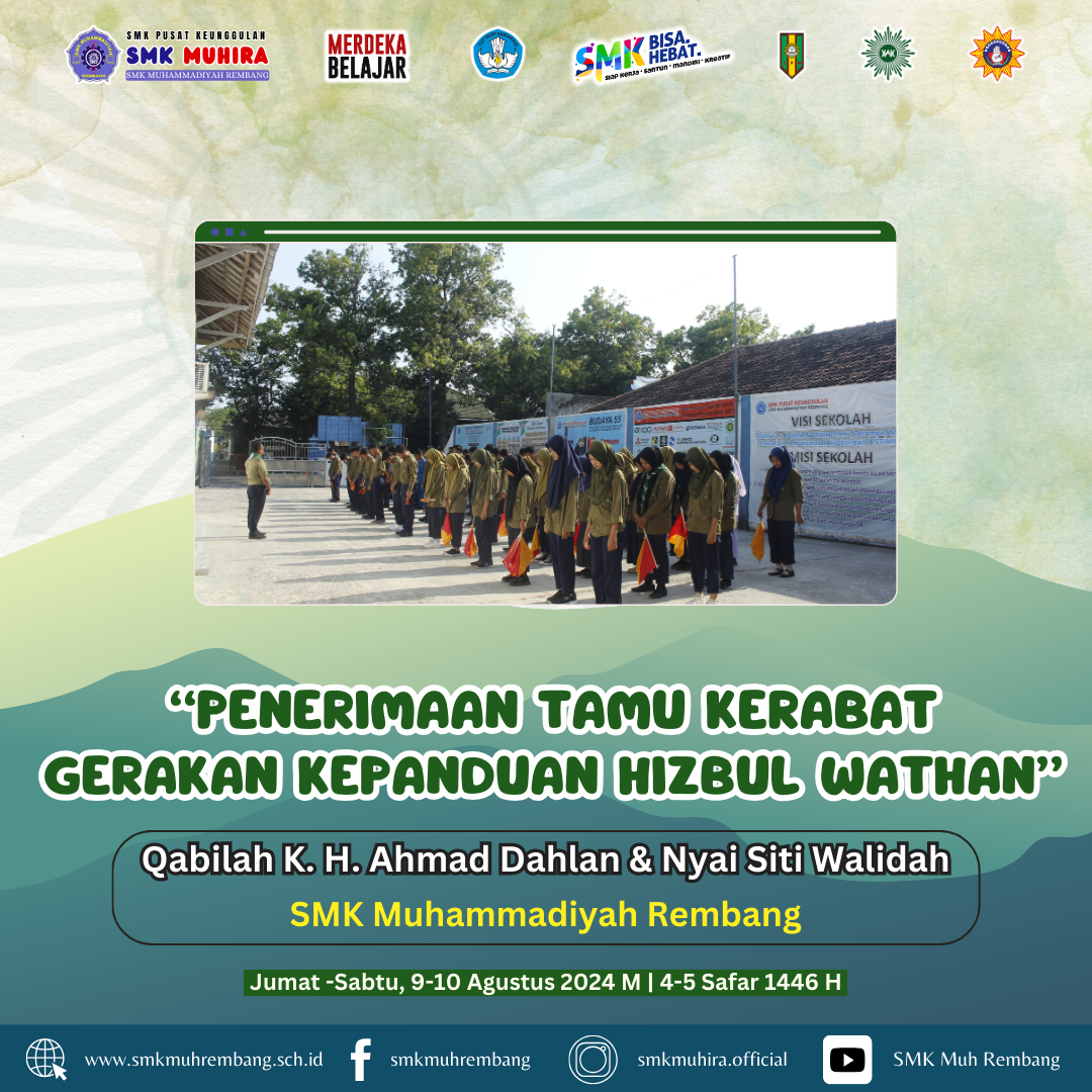 Rembang, 9-10 Agustus 2024 — SMK Muhammadiyah Rembang dengan bangga menyelenggarakan acara "Penerimaan Tamu Kerabat Gerakan Kepanduan Hizbu...