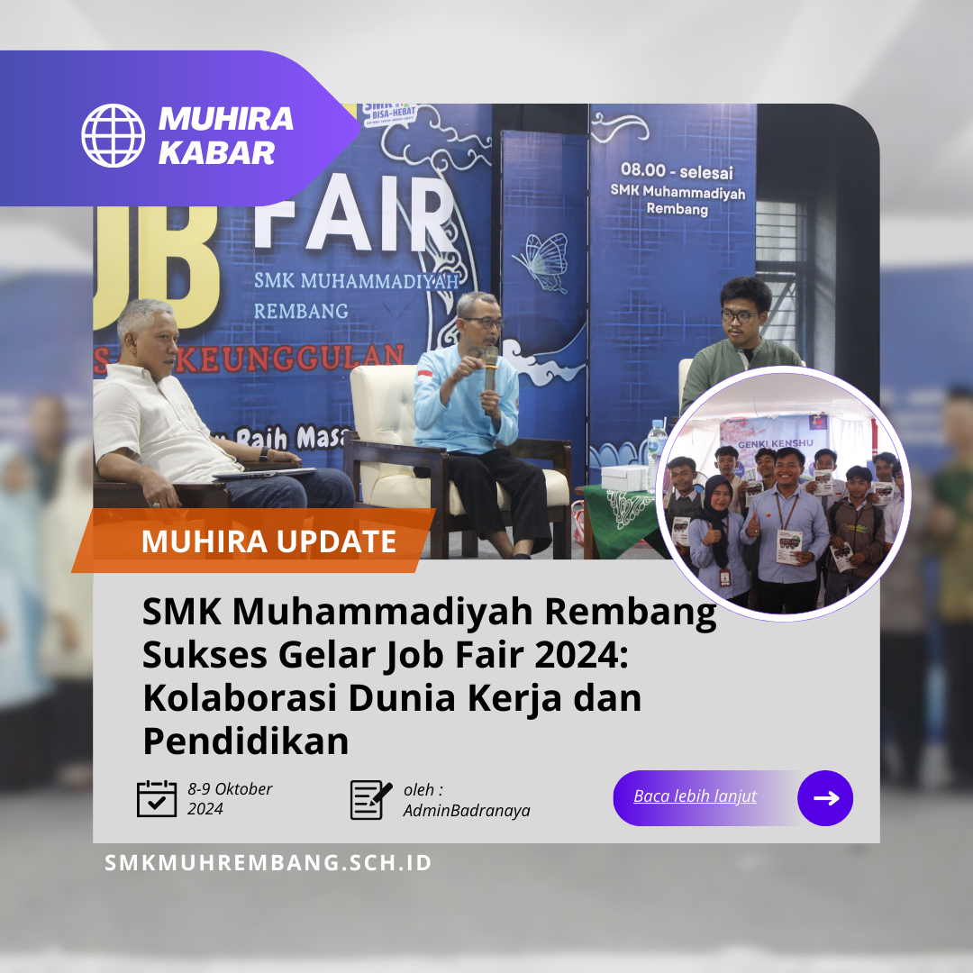 Rembang, 9 Oktober 2024 — SMK Muhammadiyah Rembang kembali mengadakan kegiatan akbar Job Fair 2024 yang berlangsung selama dua hari, pada 8...